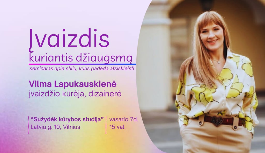 🌟Mano tikslas seminare supažindinti jus su visai nauju požiūriu apie stilių ir įvaizdį, kai kiekvienas pasirinkimas yra sąmoningas, kai tampi dėmesingas sau, kaip jautiesi, kaip rengiesi, kaip atrodai.